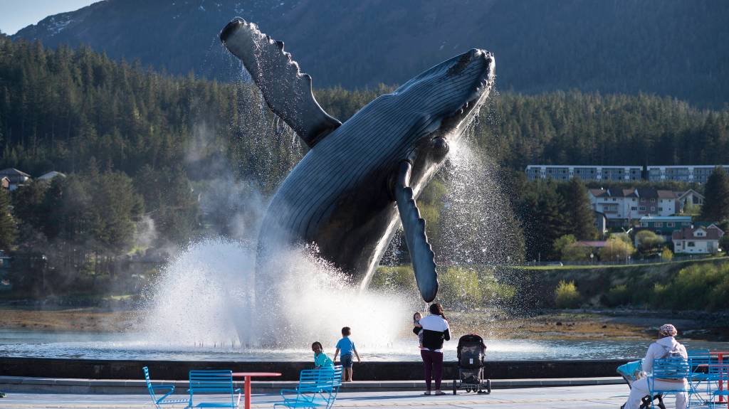 Whale worth the wait: Lights, fountain complete full-size bronze whale statue downtown