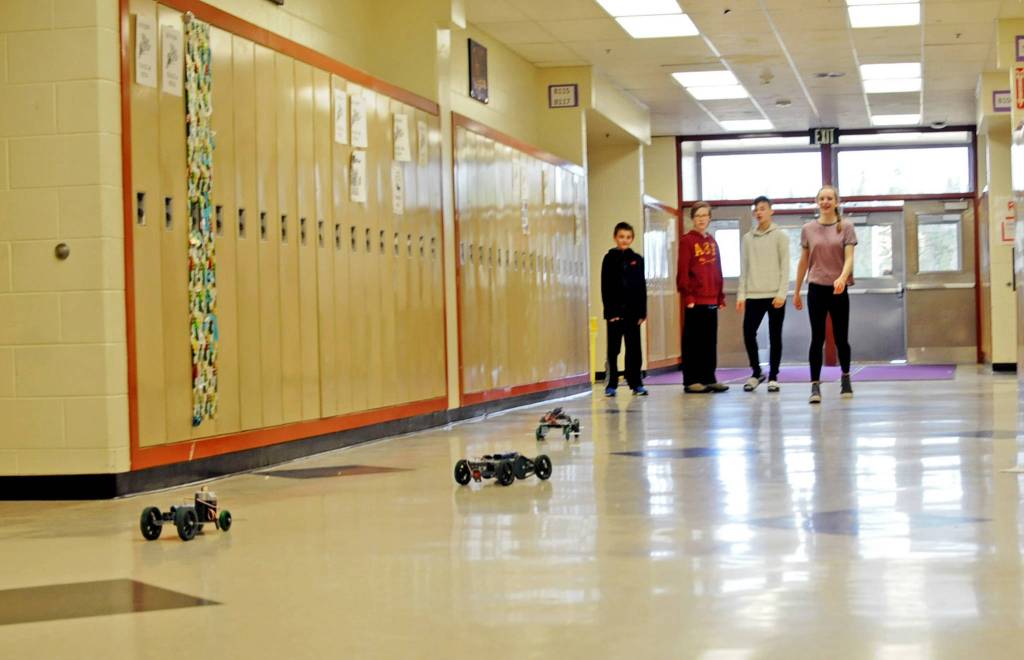The races between the robotic cars in the hallways of Skyview Middle School on Thursday afternoon weren’t the cheering kind — after all, the kids racing the cars knew more or less exactly what they’d do. They’d built and programmed the cars, after all.