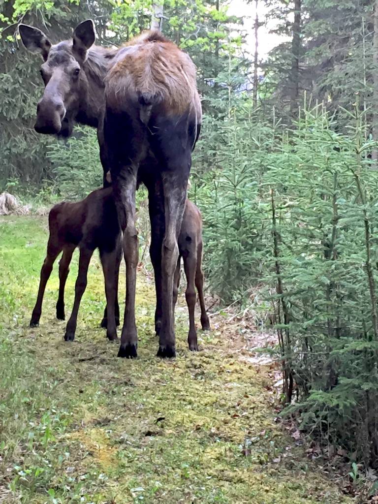 Female moose are giving birth to calves all over Southcentral Alaska, usually twins, and will be temperamental and aggressive as they protect their young. The Alaska Department of Fish and Game advises everyone to stay clear of moose in backyards, trails and parks, even if the young appear to be orphaned.