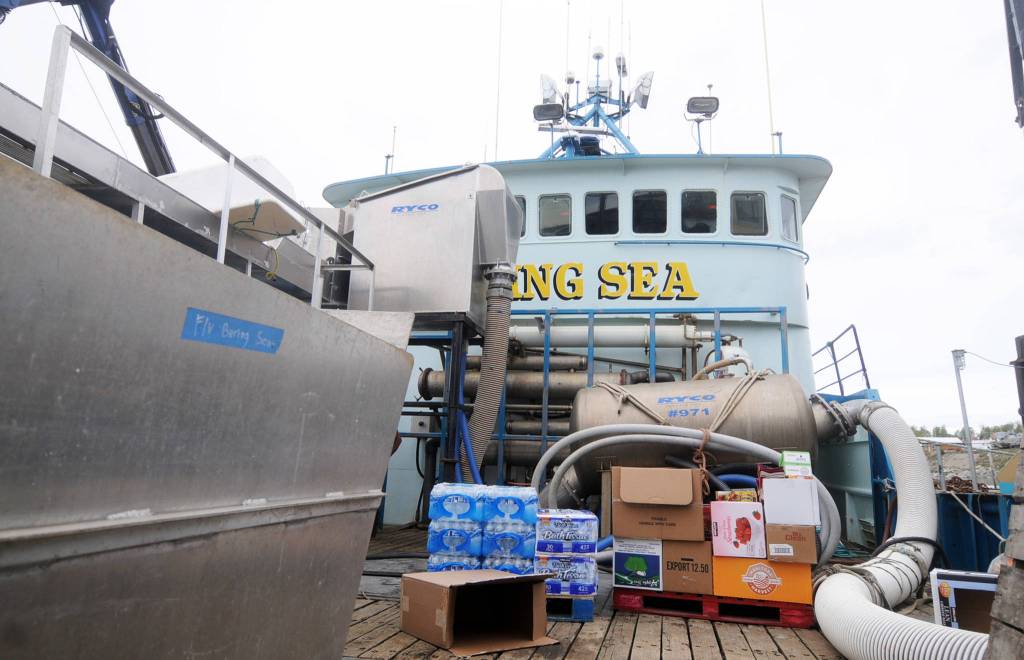 The Bering Sea, owned by Snug Harbor Seafoods, is a 114-foot retired crabbing boat of iron/steel alloy built in 1973 and originally homeported in Washington state. With wooden decks and the company’s logo emblazoned on its side, it dominates the end of the dock in the Kenai River as workers stocked it with groceries and worked to get it ready for the upcoming season last Friday.
