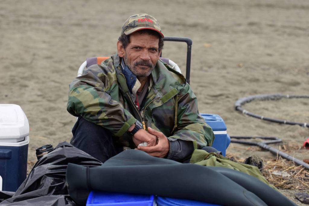 Anchorage resident Mike Wolford rests on Kenai Beach Tuesday, June 10, 2018, during the first day of dipnetting season in Kenai, Alaska. Wolford, who traveled with a friend to join in the dipnetters, had caught on salmon by mid-afternoon. (Photo by Erin Thompson/Peninsula Clarion)