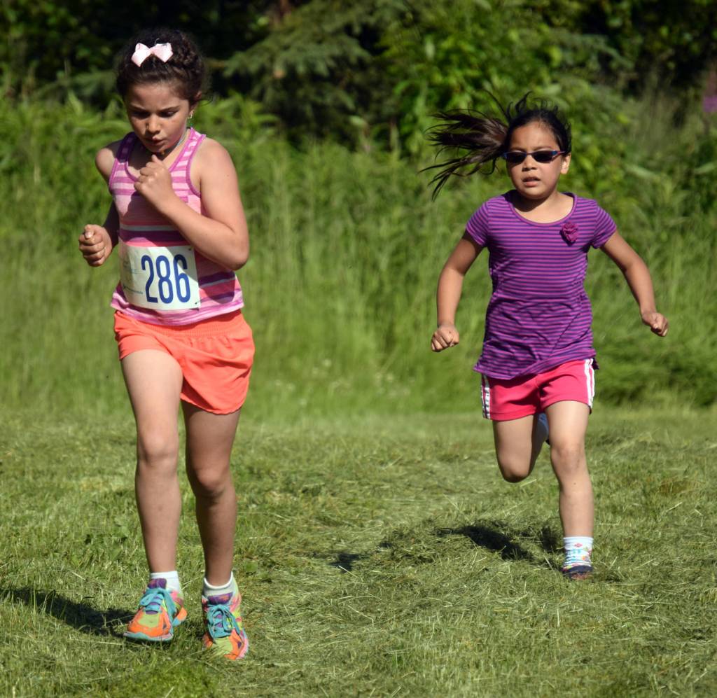 Just behind Salzer in the 1K race was Myka Battiest, 6, of Kenai, showing that it doesn’t have to be Ostrander that inspires a runner.