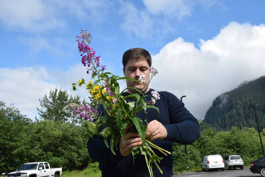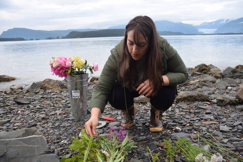 I met Garcia Johnson after work at the Frenchie’s Florals in Juneau, where she’s a manager. Our destination — a patch of roadside filled with wildflowers past a boat launch on North Douglas Highway.