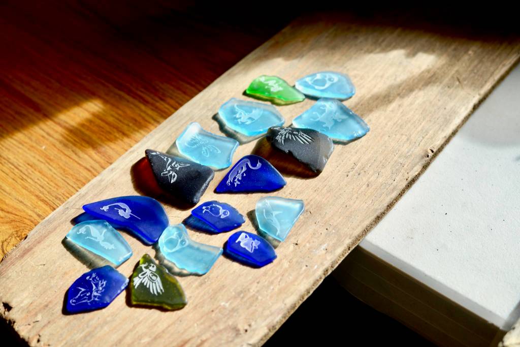 Ward: Right now though, we’re selling almost as quickly as we’re making. This is our first year doing a market like that. It’s been good. It’s been interesting to see what the trend is because octopus, lighthouses, jellyfish and mermaids have been huge this year. Last year it was birds and ravens, and orcas are always really popular. We’re also looking at doing mosaic classes this winter where people can come in and we would provide the glass, the rocks, the sand, and they could bring other stuff and they could make their own mosaic. We’ve done two classes so far.