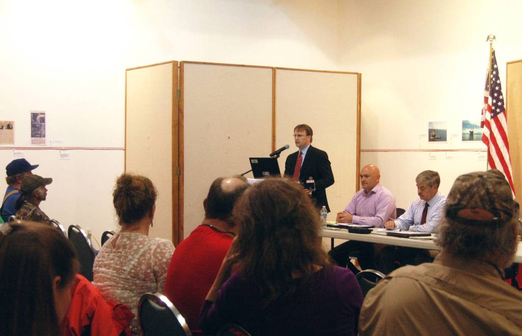 People still readily packed out a public meeting Monday to express their frustration with the crime rate in the area, particularly property crime and repeat offenders. More than 50 people filled the chairs at a town hall meeting hosted by Sen. Peter Micciche (R-Soldotna) with a number of state criminal justice officials — including Kenai Police Chief Dave Ross and Alaska Department of Public Safety Commissioner Walt Monegan — to voice similar concerns about crime rates that they have been for about the last five or six years.