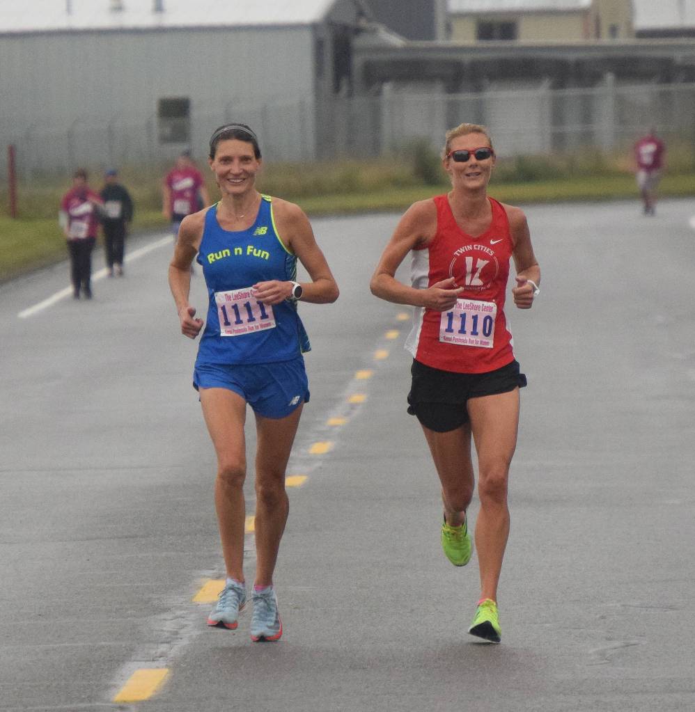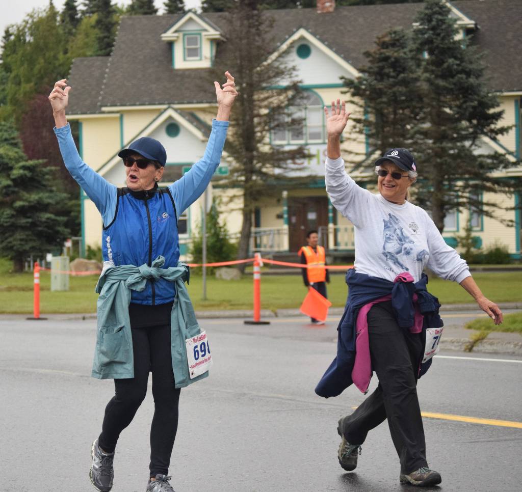 The two lithe endurance athletes jogged down Main Street in Kenai to cross together in a time of 42 minutes, 54 seconds.