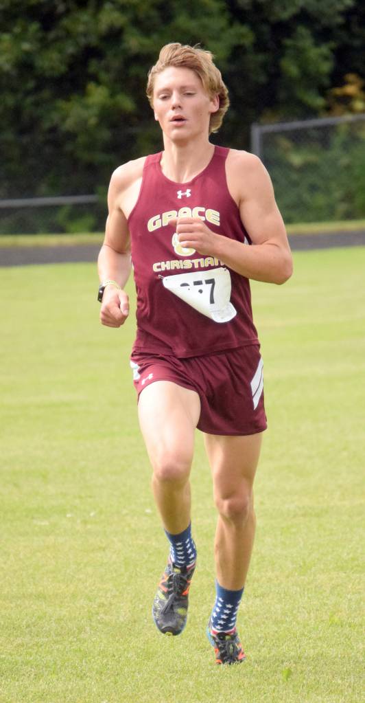 Pfeiffenberger also waited to take command of the race, moving swiftly through the pack in the middle portion to win at 19:09, while Grace’s Preston Wethington was second at 19:21. The Seward sophomore said he made his decisive move three kilometers into the race.