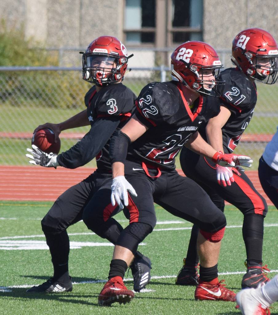 “It all comes down to how we practice,” said Kardinals quarterback Connor Felchle, who brought back an interception himself. “We came in focused, and our scout team helped us, they ran North Pole’s plays this week and we knew what we were gonna get.”