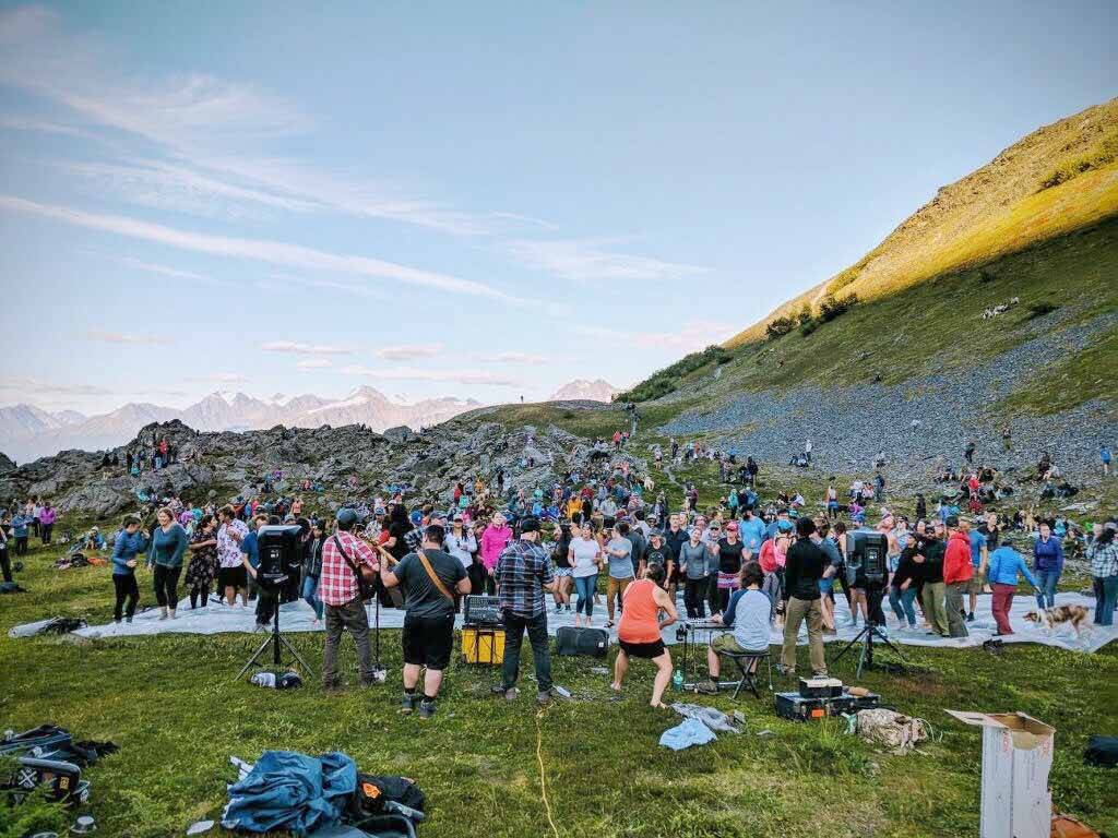 This past, sunny, Labor Day weekend, the Marathon Bowl stole some attention from its neighbor, the infamous race point on Mt. Marathon, with a live concert from Blackwater Railroad Company. Crowds hiked up along the Marathon Jeep Trail, through the bench and into the bowl for the concert, getting music lovers on the trail and hike enthusiasts to a show.