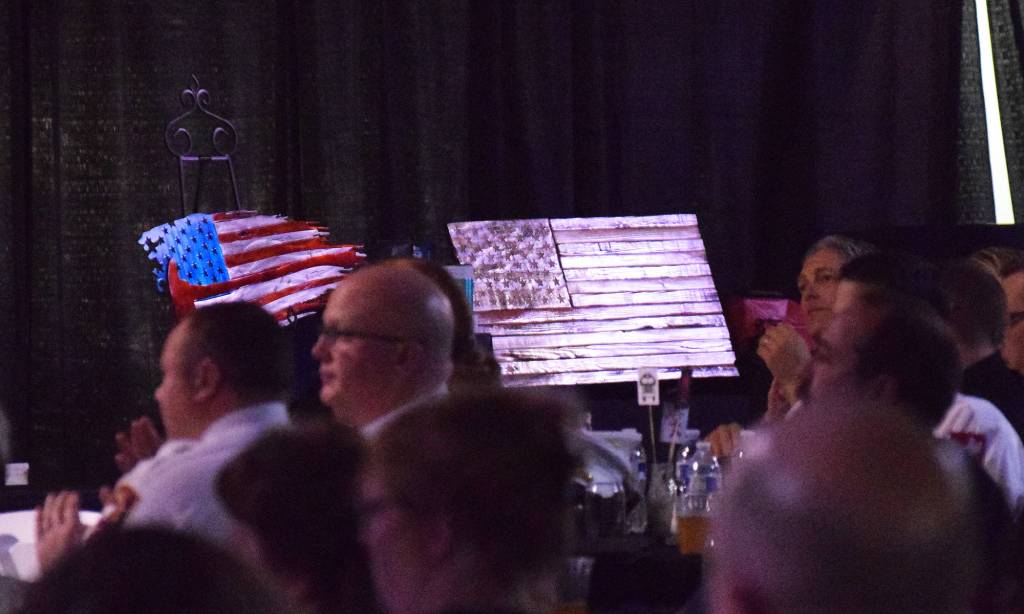 The evening included an outcry auction of several valuable art pieces, including a custom metal American flag art design that was adorned with a firefighting axe.