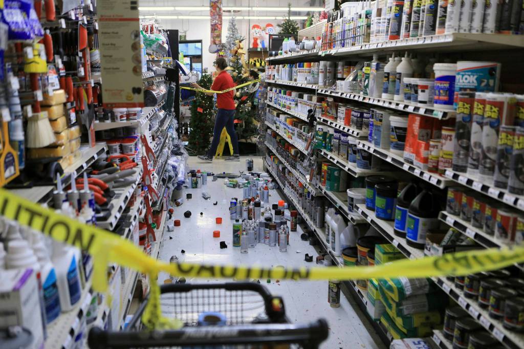 An employee walks past a damaged aisle at Anchorage True Value hardware store after an earthquake, Friday morning, Nov. 30, 2018, in Anchorage, Alaska. Tim Craig, owner of the south Anchorage store, said no one was injured but hundreds of items hit the floor and two shelves collapsed in a stock room. (AP Photo/Dan Joling)                                An employee walks past a damaged aisle at Anchorage True Value hardware store after an earthquake, Friday morning, Nov. 30, 2018, in Anchorage, Alaska. Tim Craig, owner of the south Anchorage store, said no one was injured but hundreds of items hit the floor and two shelves collapsed in a stock room. (AP Photo/Dan Joling)