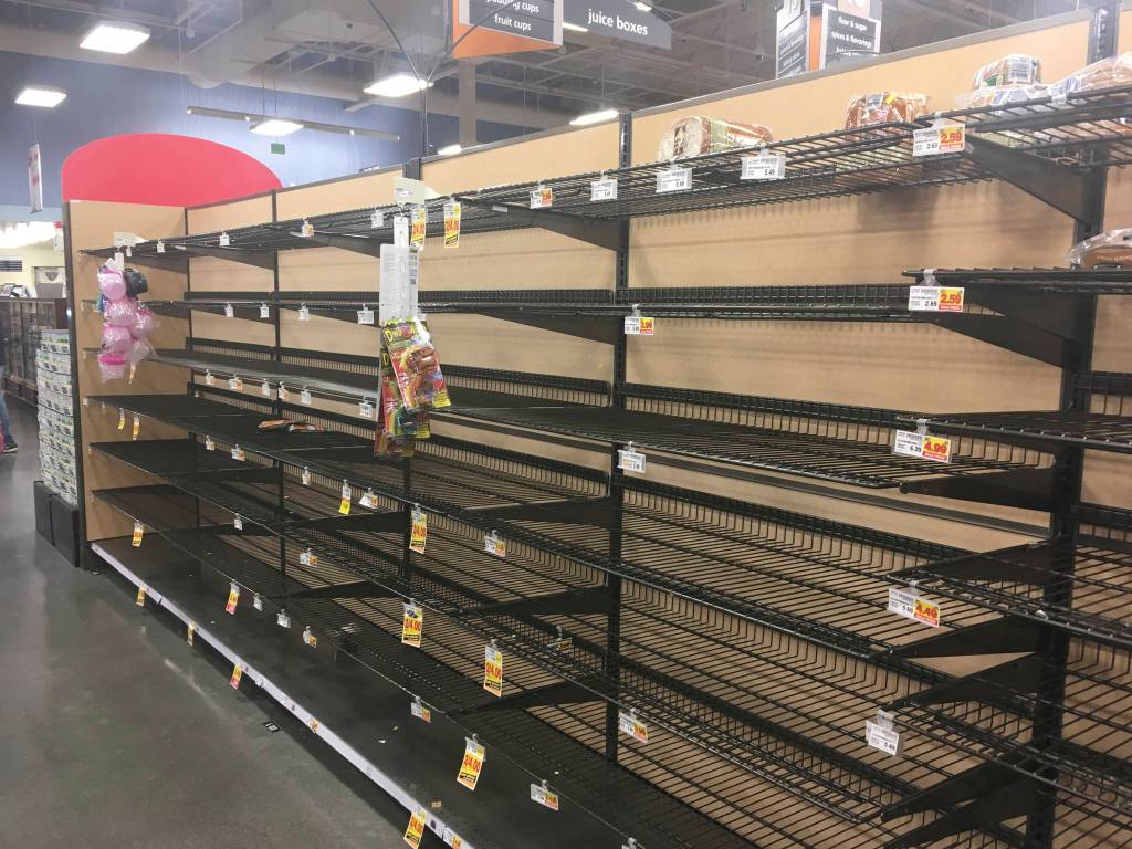 However, at least one grocery store Sunday morning had no milk and little to no bread, bottled water or bananas.