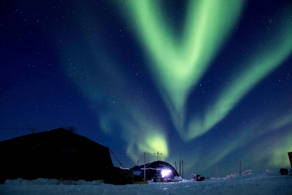 In this March 9 file photo provided by the U.S. Navy, the aurora borealis displays above Ice Camp Skate in the Beaufort Sea during Ice Exercise (ICEX) 2018. Scientists are seeing surprising melting in Earth’s polar regions at times they don’t expect, like winter, and in places they don’t expect, like eastern Antarctica. (MC 2nd Class Micheal H. Lee/U.S. Navy via AP, File)