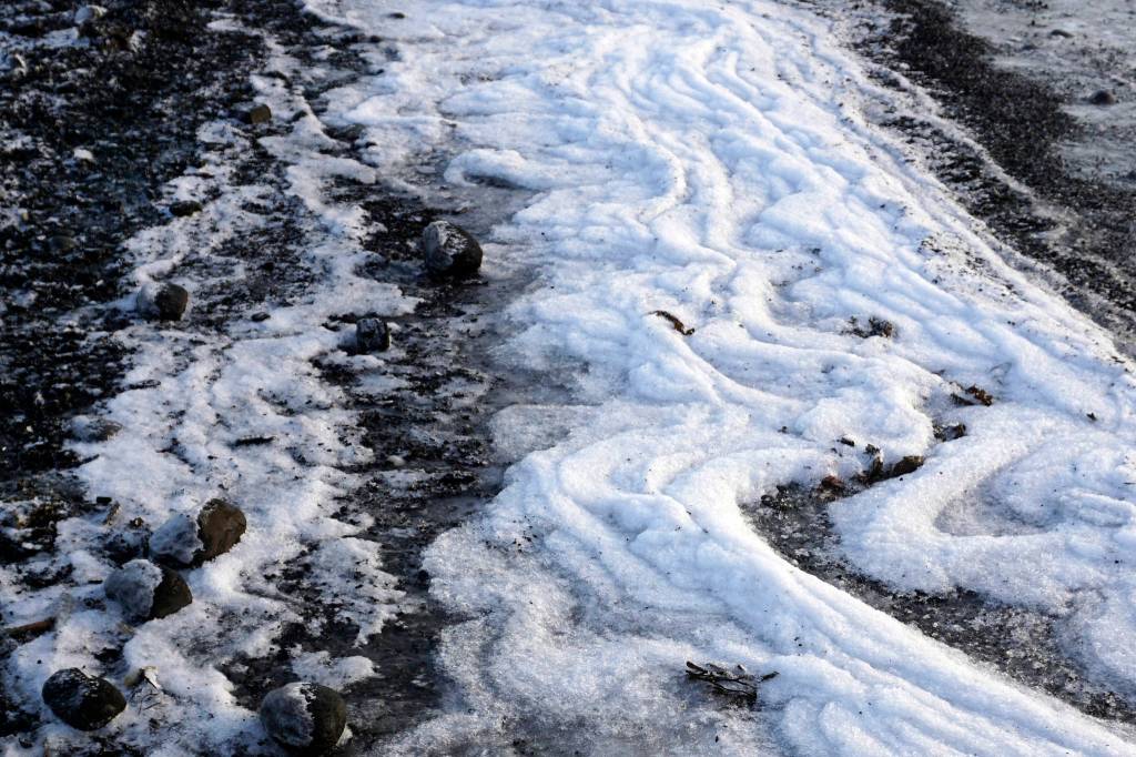 Ice forms at the tide line on the beach near Mariner Park on Tuesday, Jan. 8, 2019, in Homer, Alaska. (Photo by Michael Armstrong/Homer News)                                Ice forms at the tide line on the beach near Mariner Park on Tuesday, Jan. 8, 2019, in Homer, Alaska. (Photo by Michael Armstrong/Homer News)
