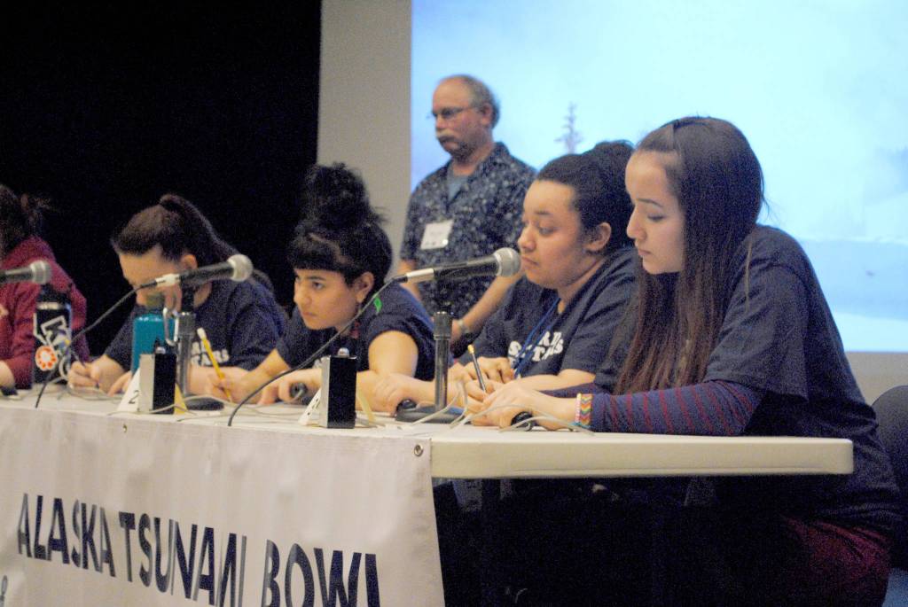The Seward Starfish competed in the 22nd annual Alaska Regional National Ocean Bowl competition, known as the Alaska Tsunami Bowl, at Seward High School on Feb. 22. From Feb. 21 to 24, the University of Alaska Fairbanks College of Fisheries and Oceans Sciences hosted 16 teams from across Alaska at Seward High School, testing their knowledge of ocean science against one another. The winning team, decided on Sunday, will travel to Washington D.C. to compete at a national level. (Photo by Kat Sorensen/Peninsula Clarion)