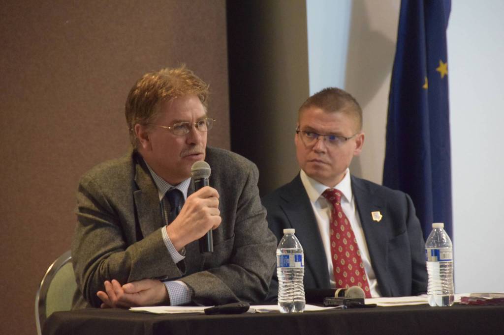 During the Kenai Chamber of Commerce’s Wednesday Luncheon, Mayor Brian Gabriel and City Manager Paul Ostrander went over the current state of the city, including what the city’s budget will look like this year, trends in revenue and spending, the impacts of public services and the status of current city projects including the bluff stabilization project and the renovation of the Kenai Municipal Airport.