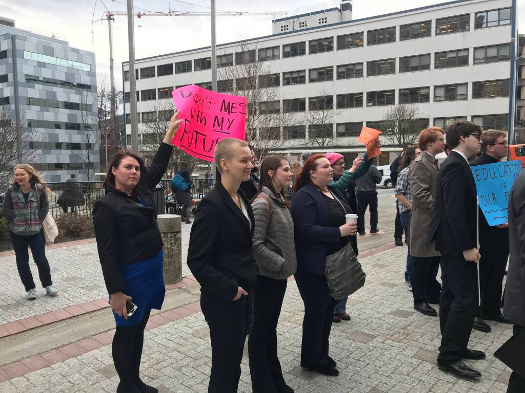 Students from the University Alaska system held a rally Monday in protest of the governor’s proposed budget cuts.