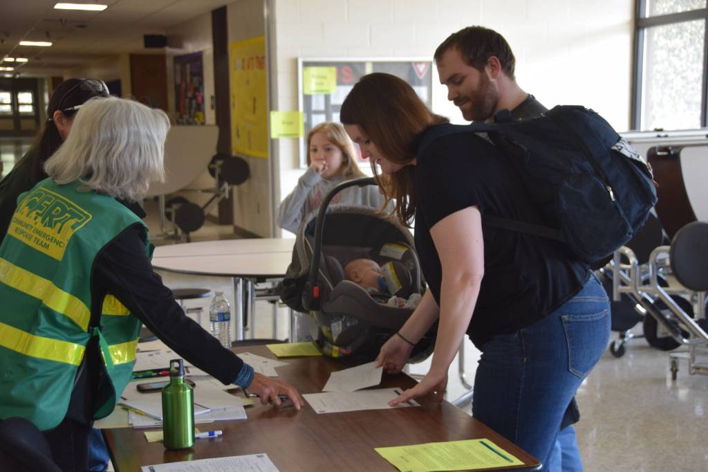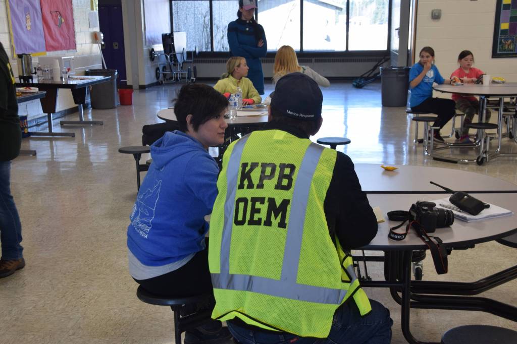 In addition to the simulated evacuation efforts, OEM set up a Disaster Help Center on Saturday at Kenai Middle School. Nelson said that this was the first time OEM was testing out this practice, which combines the resources of a mass care center and emergency shelter in one centralized location. The disaster help center is meant to provide clothes, food, shelter, medical services and access to other local agencies for the people that are evacuated from a given area after a disaster. Nelson noted that often in emergency situations families may not want to stay in a shelter and sleep on cots for a night or two, but they still need supplies like water bottles and blankets that are provided at said shelters. The disaster help center was staffed with OEM employees and CERT volunteers who signed people in and responded to their individual needs.