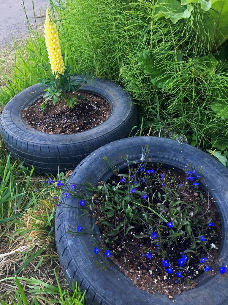 Given my track record with keeping things alive (poor to dismal) I figured perennials would be the safest way for me to go this year. I popped down to a local feed and garden store in Homer and spent the better part of two full weekends meticulously browsing the many rows and greenhouses, making notes, perfecting my choices to fit the perfect color scheme and doubling back after second guessing myself. By the end of it all, I came away with a branching, creeping bush that produces small, blue-purple blooms, a mixture of purple and orange flowers which I believe are pansies (or something else that starts with a P) and two strong, tall lupines of a color that is yet to be determined.