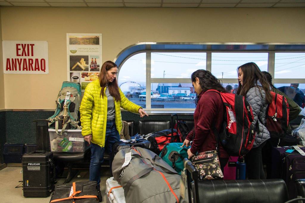 The East Anchorage High School students—Genavieve Beans, Starlyn Phillips, Jonathan Gates, and Nuulau Alaelua—and their math teacher, Ellen Piekarski, each had their own reasons for wanting to make the trip. Genavieve and Starlyn, who are both sophomores, are Alaska Native and wanted to see what life would’ve been like if they had grown up in a Native Village.