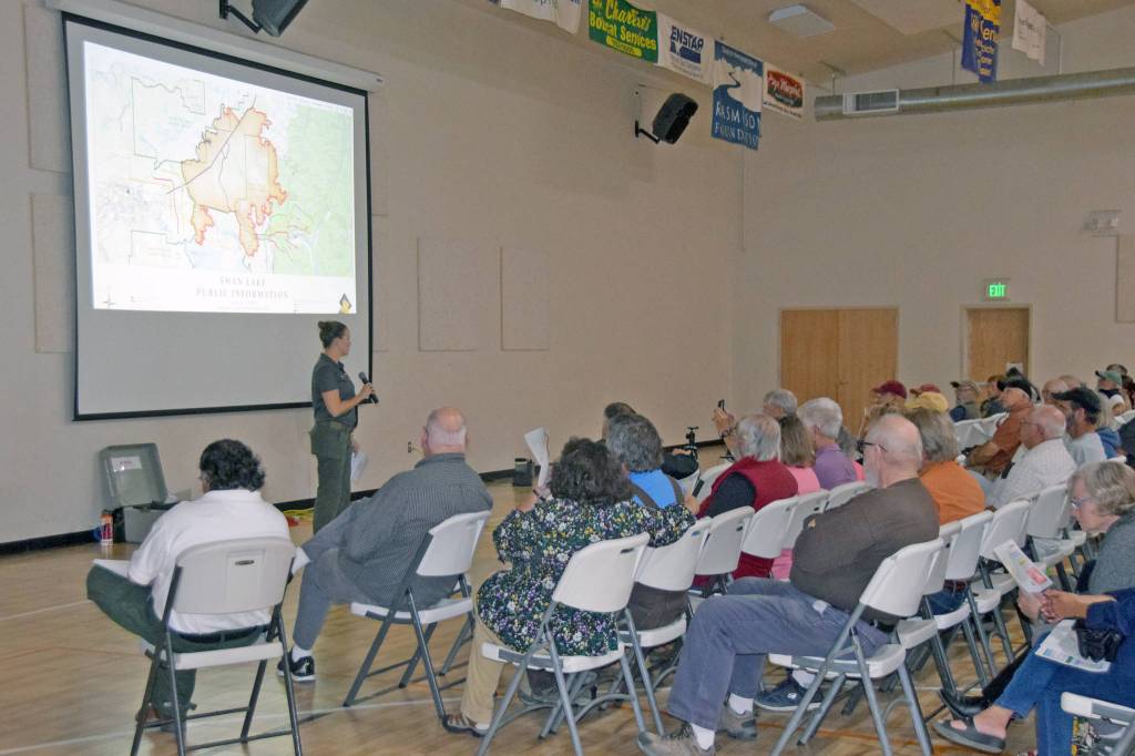 During a community meeting at the Sterling Community Center Thursday night, fire managers gave an update on the daily operations and priorities of the incident management team. After the updates, residents had the opportunity to ask questions and voice their concerns. Many of the residents’ concerns were focused on the intermittent highway closures.