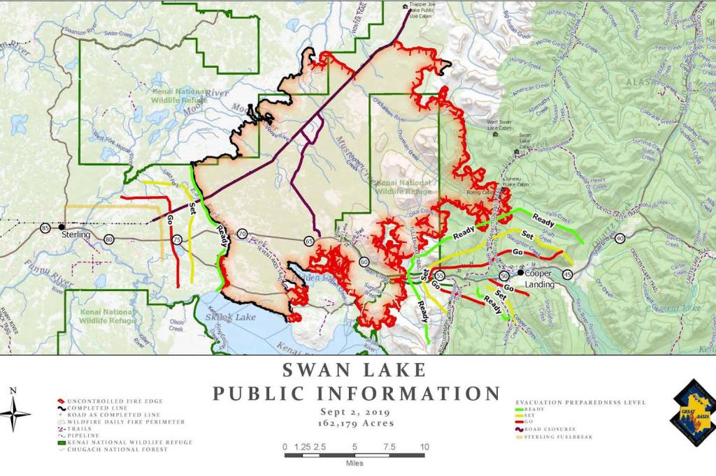 Cooper Landing remains in a “SET” evacuation status. This status is not a notice to evacuate, but it does mean that residents should already be prepared to evacuate in the situation calls for it. Those who feel they will need extra time to evacuate should do so.