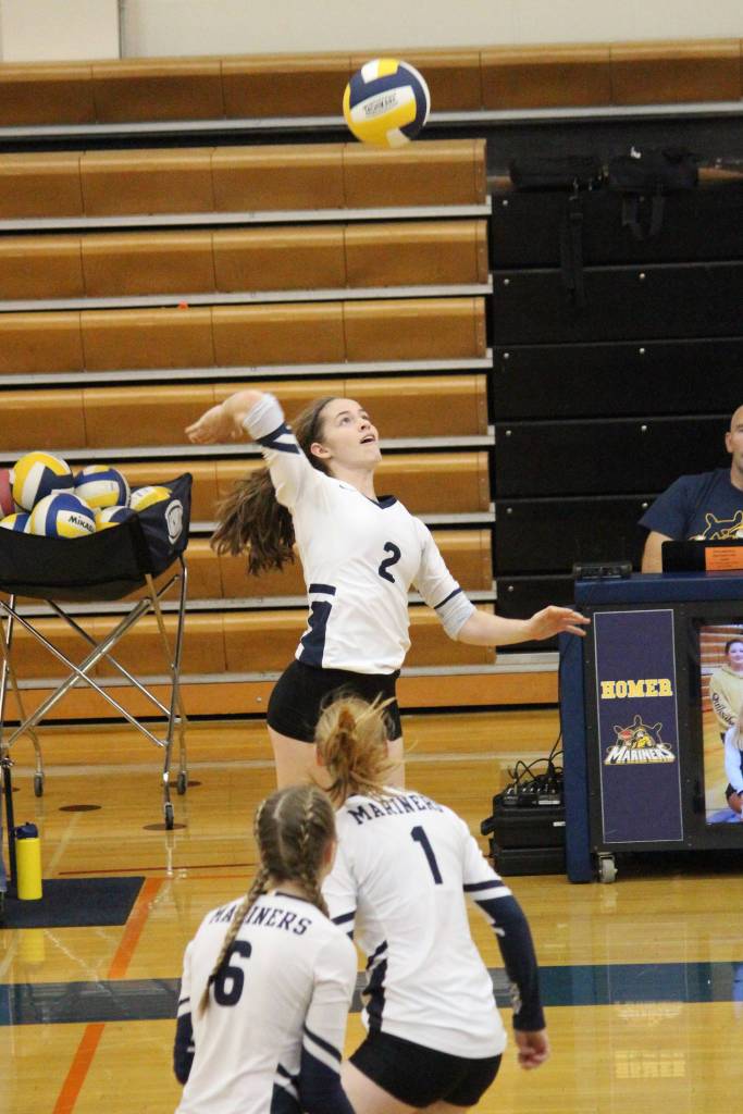 For Homer, Kelli Bishop had 24 assists and 10 digs, Laura Inama had eight kills, Karmyn Gallios had 12 digs and five kills, Kitri Classen had 13 digs and Marina Carroll had 11 kills and 15 digs.