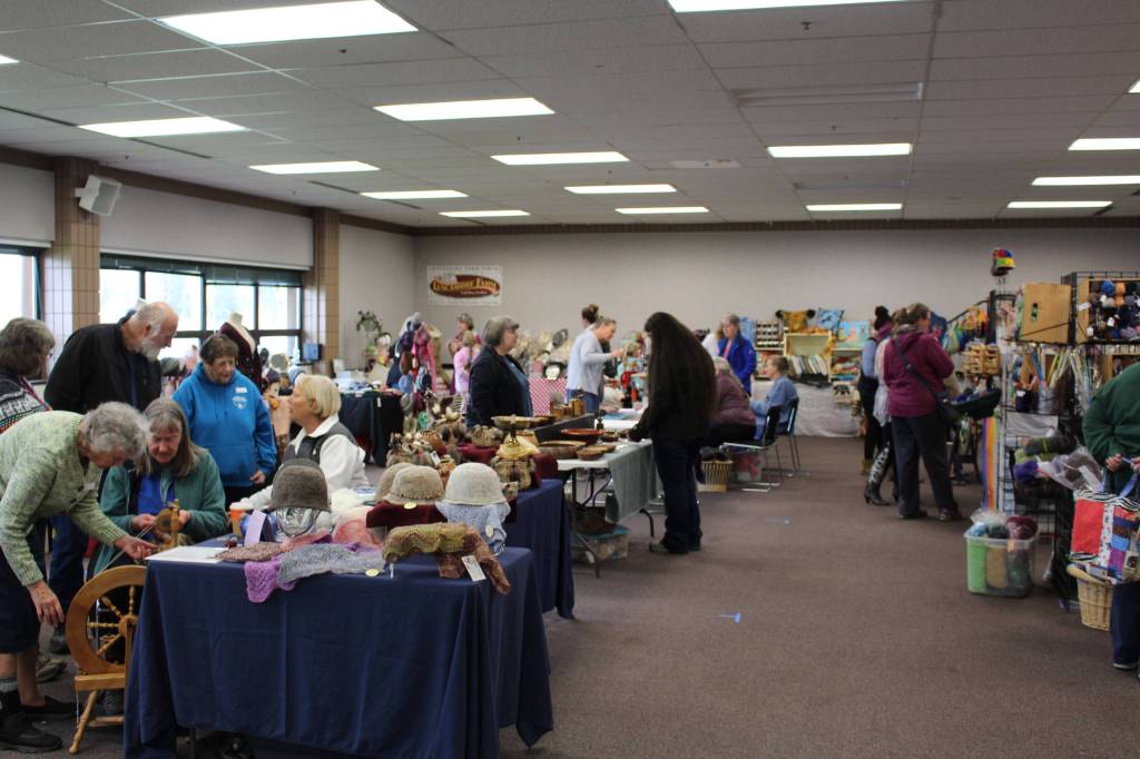 Visitors to the Fireweed FiberFest can be seen here at the Soldotna Sports Complex on Sept. 28, 2019. (Photo by Brian Mazurek/Peninsula Clarion)