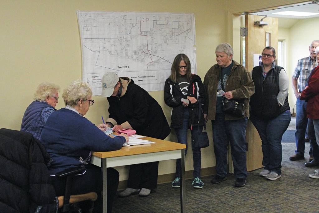 Voting was steady during the first part of the day at the Homer precinct at Homer City Hall, with a line of people filling the lobby and 292 votes cast by 1:30 p.m.