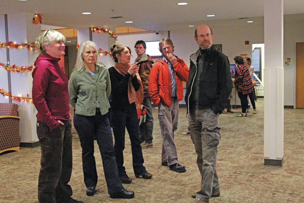 Last Friday during one of several First Friday exhibit openings in town, Freeman’s students showed their work at a reception for a collection of their work in Pioneer Hall at Homer’s branch campus of Kenai Peninsula College. Painted in bright, dynamic colors that glow with light, their creations illustrate a technique Freeman teaches that dates back to the Old Masters, artists working around 1200 to 1830.