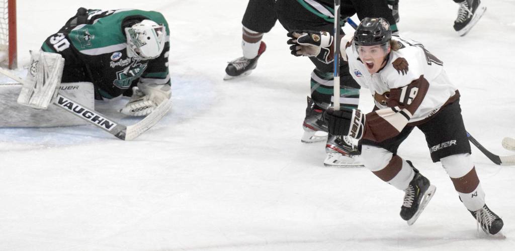 Just 16 seconds after Moline’s strike, the Bears were winning another net-front battle, with Trey LaBarge using a bar-down backhand and assists from Helgeson and Kyle Valiquette for a 2-0 lead.