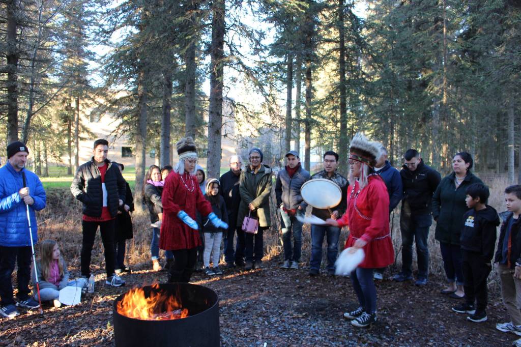 After the dances and introductions from the instructors in the three Alaska Native languages represented Saturday, the group walked outside and gathered around a fire pit facing the Kenai River for a ceremony to remember Dr. Boraas.