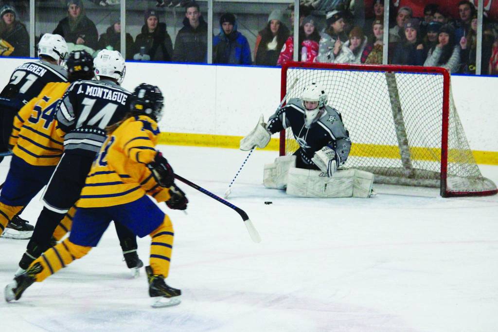 Goalies — East, Erickson (21 shots, 16 saves), Christopherson, Sievers (13 shots, 8 saves); Homer, Polushkin (6 shots, 6 saves), Strong (5 shots, 5 saves).
