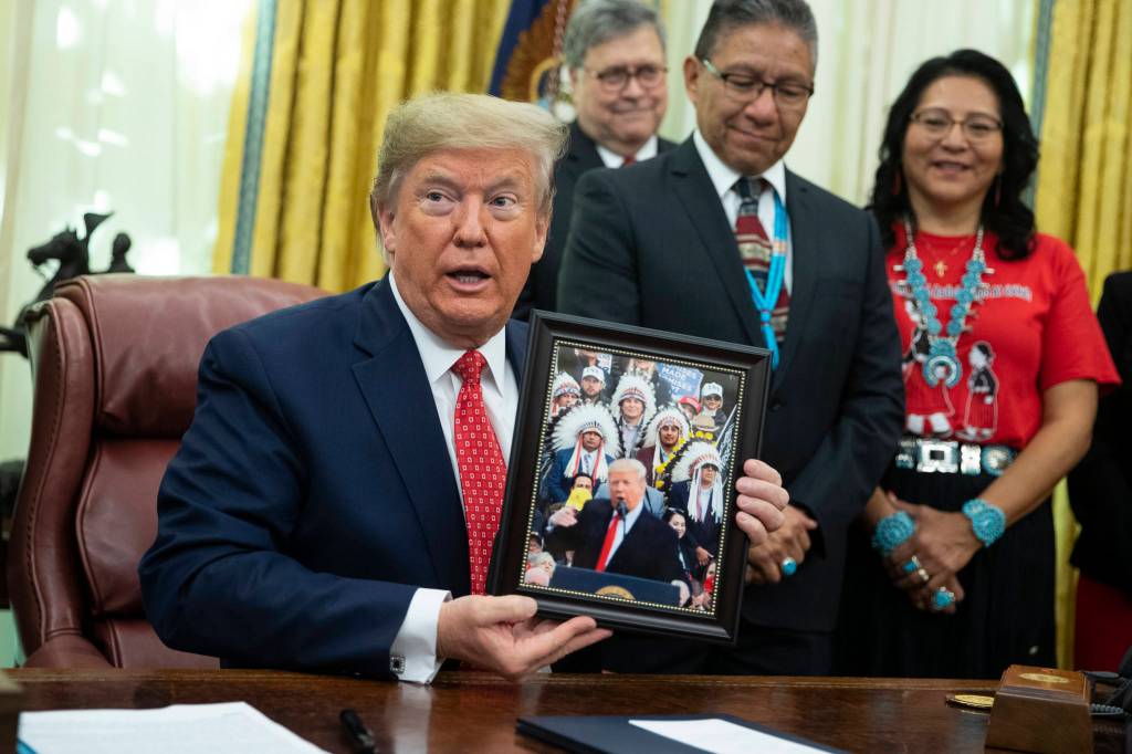 Trump was joined by representatives of the Navajo Nation, which extends into New Mexico, Arizona and Utah; the Crow Nation in Montana; and the Mille Lacs Band of Ojibwe and the Fond du Lac Band of Lake Superior Chippewa in Minnesota.