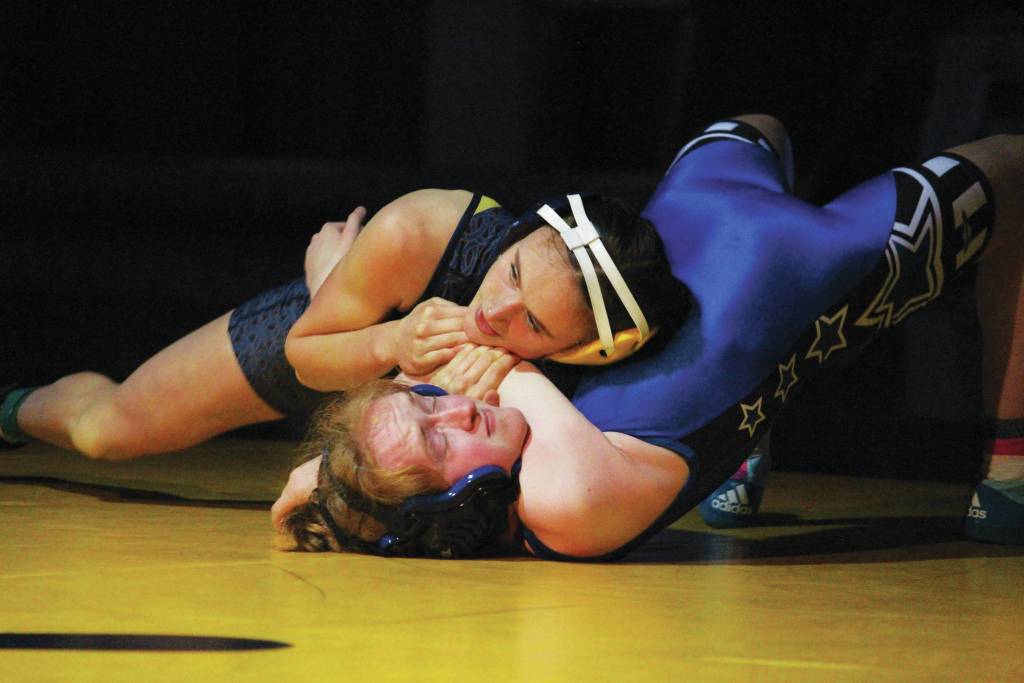 Senior Anthony Kalugin kept his place as the No. 1 ranked Division II wrestler at 189 pounds by defeating Soldotna’s Sean Babitt, as did Sadie Blake when she bested Vydell Baker by pinning her in under a minute.