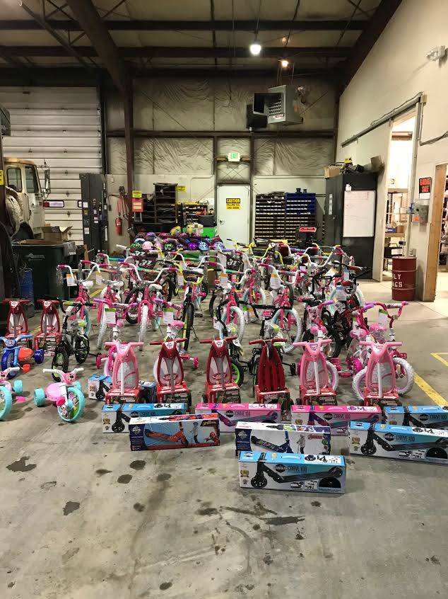Josue Rivera-Cruz / Alaska Waste                                The Alaska Waste team in Kenai built more than 60 bikes to give to area children this holiday season.