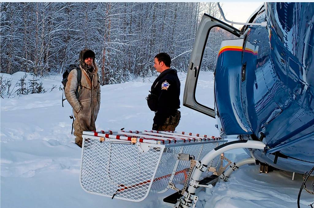 Steele initially slept in a snow cave but later built a tent-like shelter with tarps and scrap lumber around the burned cabin’s wood stove, troopers said. Steele said at one point it was so cold he didn’t want to go outside and urinated in a bucket. It froze quickly next to the stove, he said.