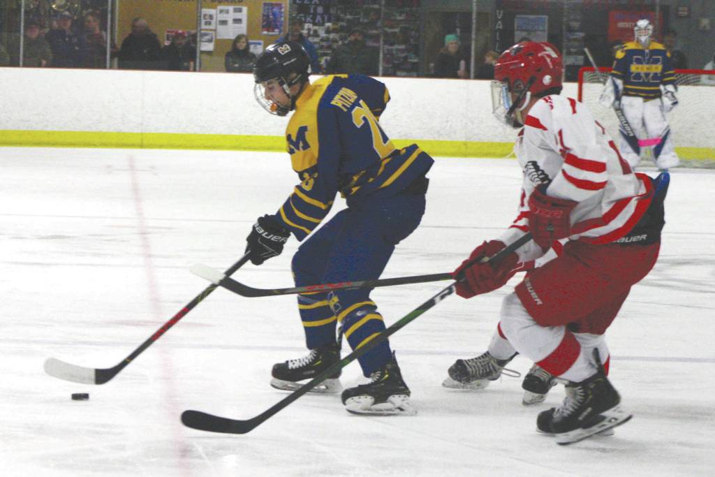 Alden Ross used a hat trick to help Division II Homer score a nonconference road win over Division I Wasilla Thursday night at the Brett Memorial Ice Arena in Wasilla. Ross netted Homer’s first three goals during the 6-3 victory over Wasilla.