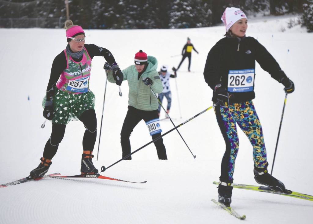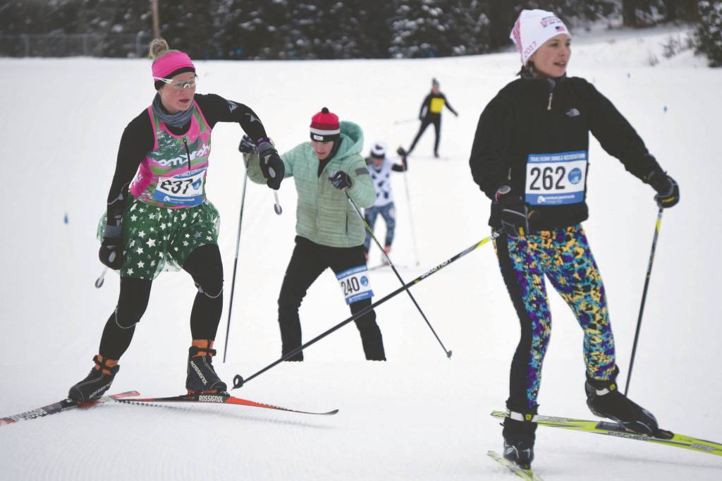 The Ski for Women drew 59 racers, including eight in the men’s drag race. Tsalteshi Trails Association treasurer Lauri Lingafelt, who organized the event with Amber Kraxberger, was happy with the turnout, especially considering a whipping wind that brought the windchill factor below zero.