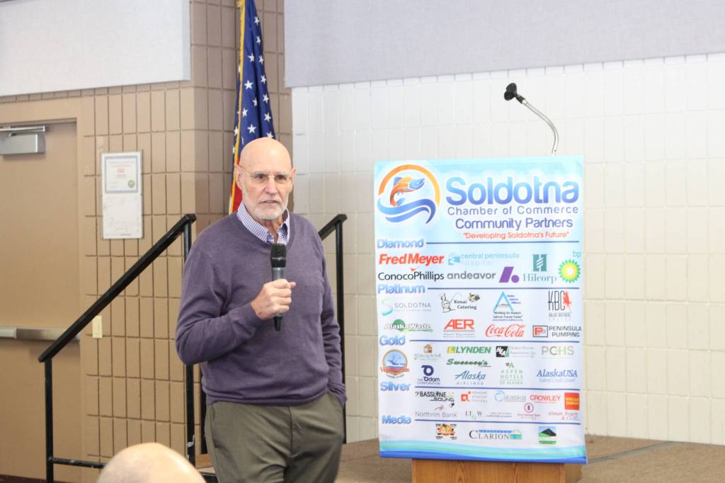 Mark Hamilton, vice president of external affairs for the Pebble Limited Partnership, spoke in general about responsible resource development in the state, but also pushed back against some of the criticisms that the mine project has received from environmental activists.