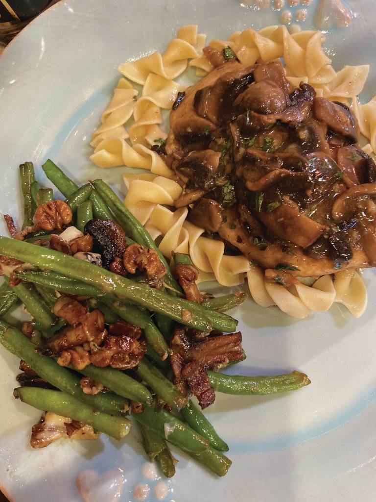 If you don’t have Marsala, substitute dry sherry. I served this atop wide egg noodles, but it’s also good with rice or mashed potatoes.