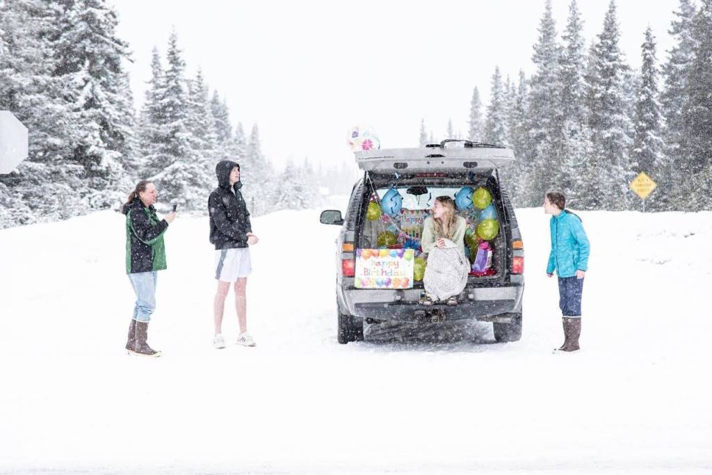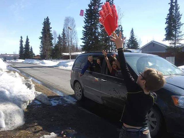 A birthday parade for Katie Stockton’s sweet 16 in Kenai, Alaska, on April 2, 2020. (Photo courtesy of Julie English)