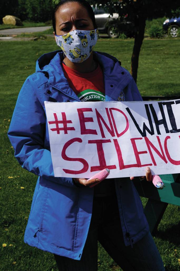 Winter Marshall-Allen, a special education teacher, organized daily demonstrations at Wisdom, Knowledge, Faith & Love Park on Pioneer Avenue. The gatherings are from 2-4 p.m., began on Saturday and will last through June 6.