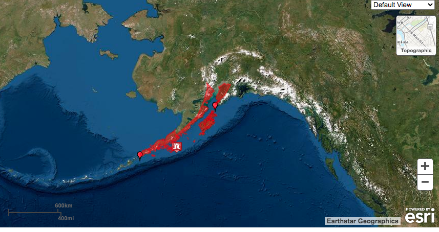 This screenshot shows the areas of Alaska under a tsunami warning following a 7.4 magnitude earthquake that struck off the Aleutian Chain Tuesday, July 21, 2020. (Screenshot from National Oceanic Atmospheric Administration)