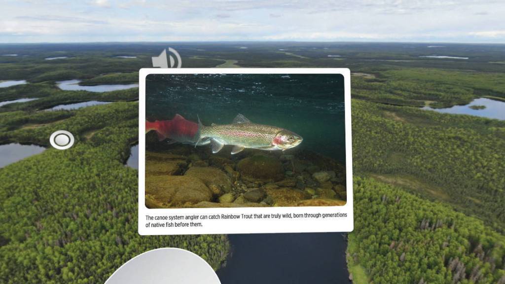 The user is transported into the refuge visitor center and prompted to gaze at a speaker icon for a few seconds. This triggers a recorded introduction to the exhibit.