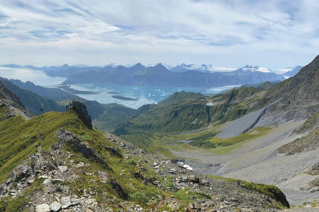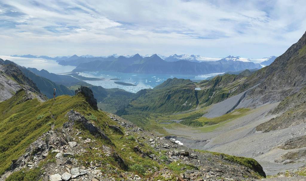 From a splendidly placed saddle near Callisto Peak, you can see Bear Glacier and it’s iceberg-laden lagoon.