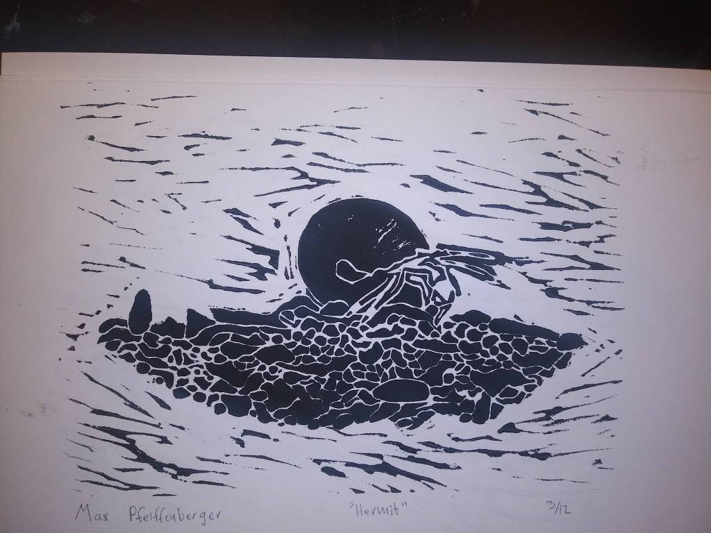 Jazmyn Musick, a tenth grader at Seward High School, said she really enjoyed learning the process of printmaking, even though the concept was a little hard to understand at first. Musick made her print from a photo of an octopus. When it came time to carve the design into the linoleum, part of her wished she had picked an animal with fewer appendages.
