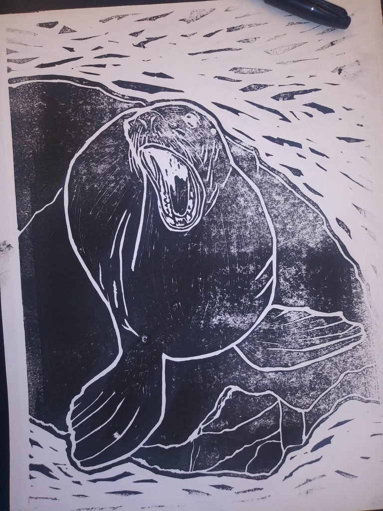 While the students knew from the beginning that the prints were meant to raise money for the SeaLife Center, they did not know their works would be publicly on display until they were well underway.