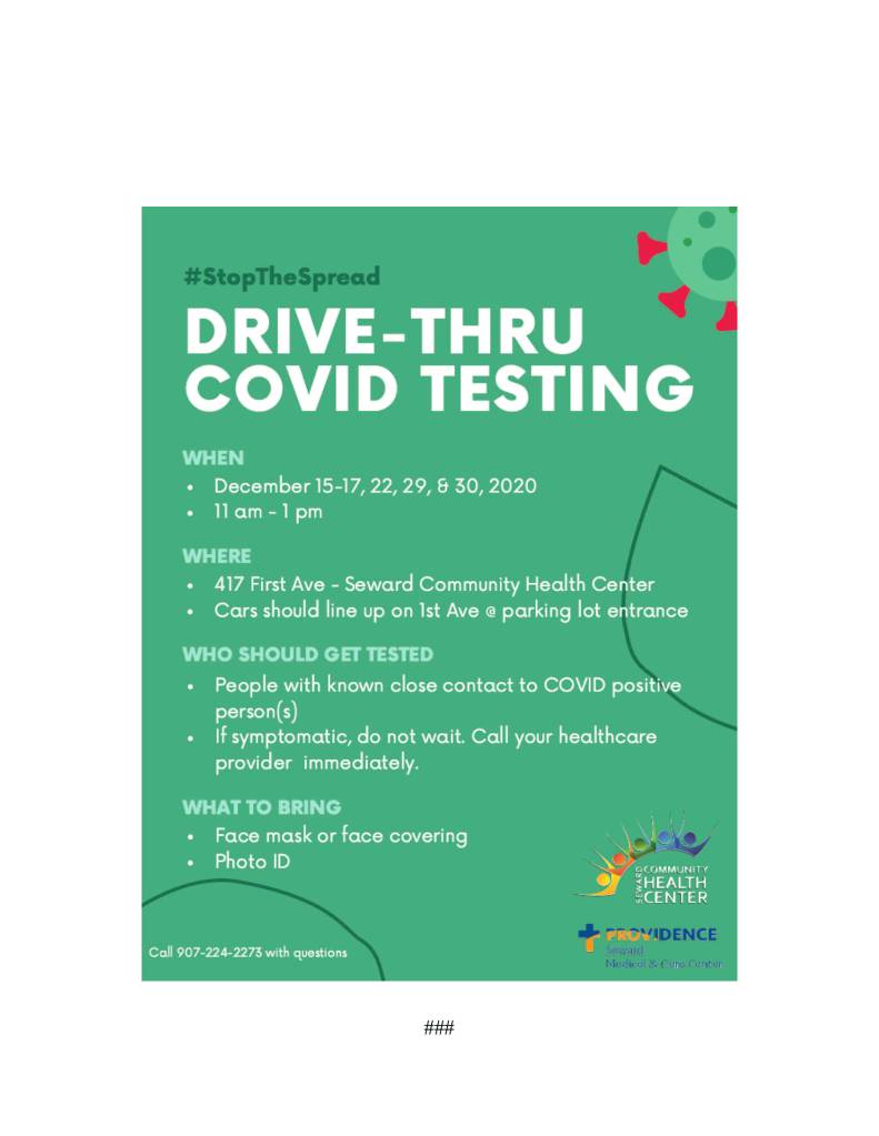 Seward Community Health Center is offering targeted drive-thru COVID-19 testing through the rest of December.