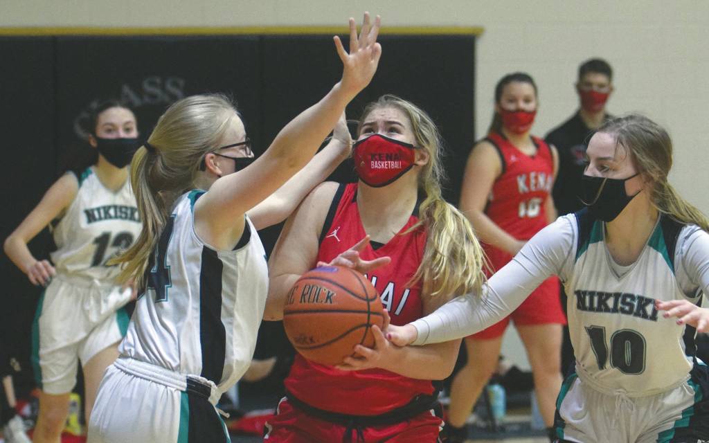 After Avery White cut Kenai’s lead to 45-41 late in the fourth quarter, Erin Koziczkowski, who had 14 points, made it 46-41 with a free throw.